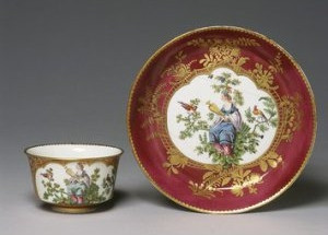 La forma de las tazas, fueran para el chocolate, el té o el café, era muy similar más allá de la presencia o ausencia de asas, y estaban decoradas de la misma manera. Los motivos eran a menudo florales, escenas al aire libre, y alguna variación de una escena oriental que se extendía de simple a bastante detallada. El color podía ser azul y blanco básico o más elaborado con múltiples colores en la pieza.